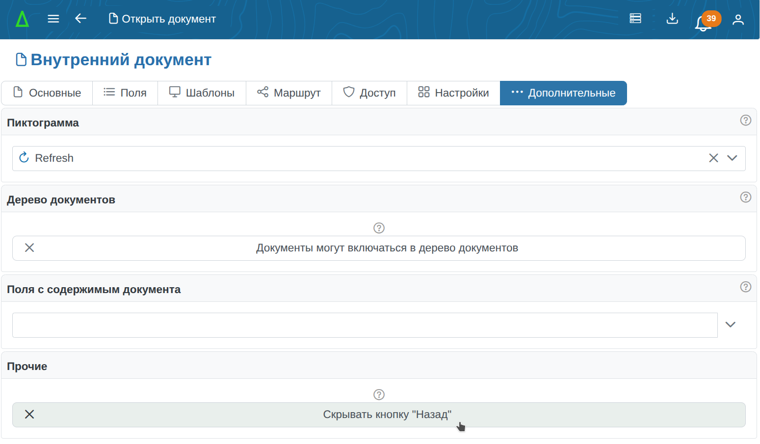 👀 Кстати, если документ откроется из журнала — кнопка «Назад» будет показана пользователю даже если