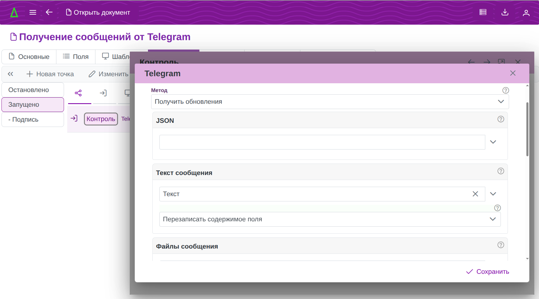 2️⃣ ⏱️ Запускаем действие «Telegram» в режиме получения обновлений.